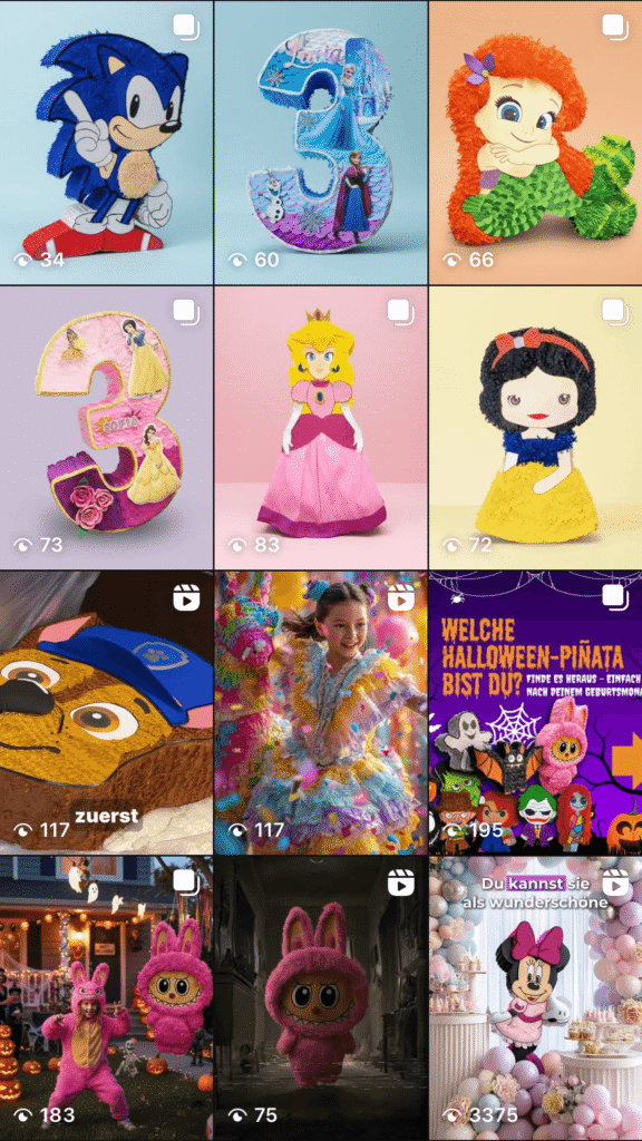 • Content & Video: Entwicklung eines visuellen Leitfadens, Redaktionsplans, Skripte und saisonaler Kampagnen (Halloween, Labubu, Minnie, Superhelden).