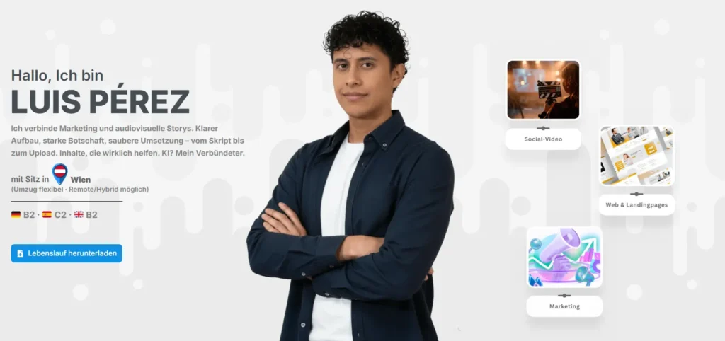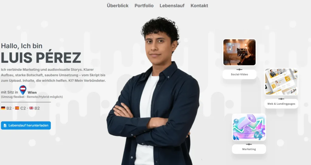 „perezluis.io“ ist meine persönliche digitale Visitenkarte – und gleichzeitig ein Beispiel dafür, wie ich Websites schnell, sauber und strategisch aufbauen kann.